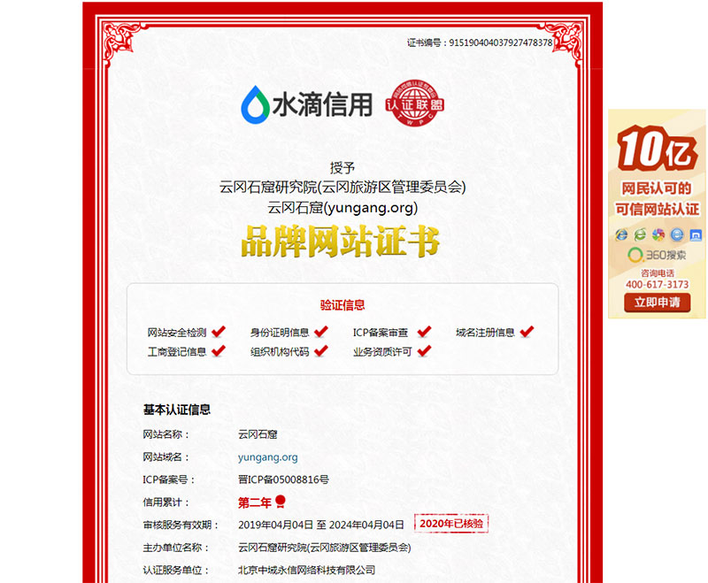 祝賀云岡石窟網(wǎng)站通過信用聯(lián)盟安全認(rèn)證檢測及官網(wǎng)標(biāo)識