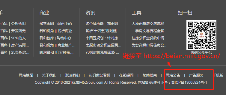 根據(jù)國家規(guī)定和管理要求,各網(wǎng)站主辦者在2021年1月20日(各接入商要求整改的時(shí)間不完全一致,大體在2021年1月下旬)前完成網(wǎng)站主頁底部網(wǎng)站備案號的懸掛和鏈接工作,特別提示:必須懸掛網(wǎng)站備案號,例如:晉ICP備****號-1;不可以懸掛主體備案號,例如:晉ICP備****號。鏈接須指向工信部備案管理系統(tǒng)網(wǎng)址(https://beian.miit.gov.cn)。若未及時(shí)整改,根據(jù)相關(guān)規(guī)定將面臨省通信管理局責(zé)令整改、并處五千元以上一萬元以下罰款的處罰,或應(yīng)相關(guān)監(jiān)管部門要求,網(wǎng)站有被關(guān)閉、備案被取消接入或網(wǎng)站備案被注銷的風(fēng)險(xiǎn)。
