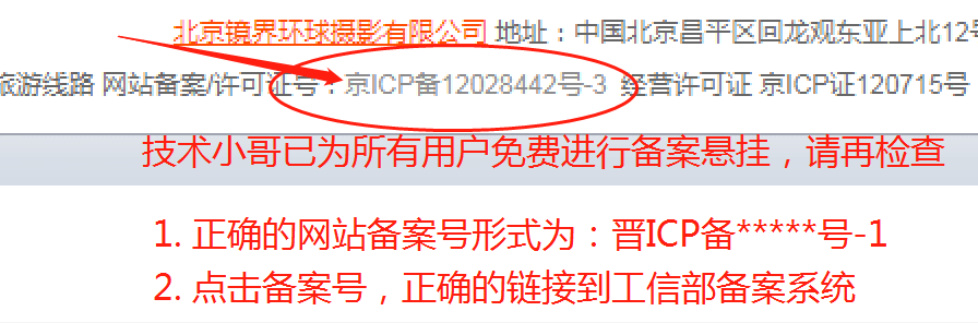 截至目前,宏微技術(shù)小哥已經(jīng)加班加點(diǎn),為所有用戶免費(fèi)進(jìn)行了網(wǎng)站備案號懸掛和鏈接指向修改。因修改涉及客戶數(shù)量多,修改范圍廣(此前只要求懸掛主體單位備案號如晉ICP備****號),各家客戶采用的網(wǎng)站系統(tǒng)和數(shù)據(jù)形式不同,雖反復(fù)檢查,仍唯恐遺漏,所以請廣大網(wǎng)站備案用戶務(wù)必在電腦端打開網(wǎng)站,查看首頁底部的網(wǎng)站備案號是否為“晉ICP備****號-1”形式,并測試點(diǎn)擊備案號可以打開工信部備案系統(tǒng)https://beian.miit.gov.cn,如出現(xiàn)遺漏或鏈接無法打開,請速速與我們聯(lián)系,避免被處罰或取消接入等風(fēng)險(xiǎn)。