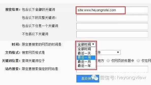 這是很多之前做seo朋友問我很多次的問題,其實(shí)我們完全可以通過高級指令的組合方式去解決這個問題,比如有人想要看看我的博客外鏈情況,就可以使用這種組合形式“domain:www.heyangnote.com -site:www.heyangnote.com”,見圖: