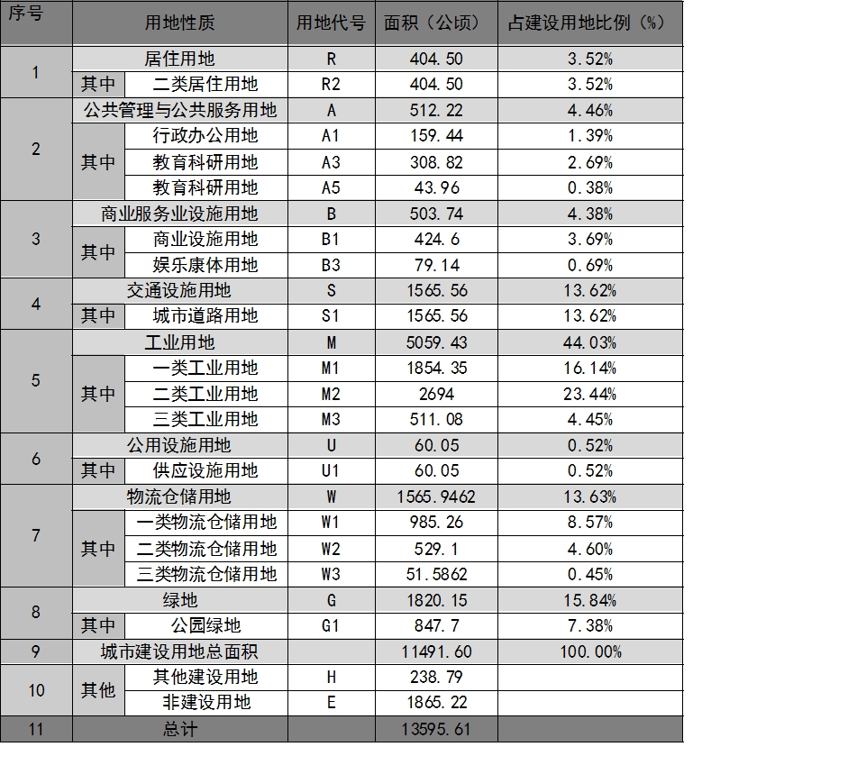 2030年產(chǎn)業(yè)園區(qū)用地指標匯總表