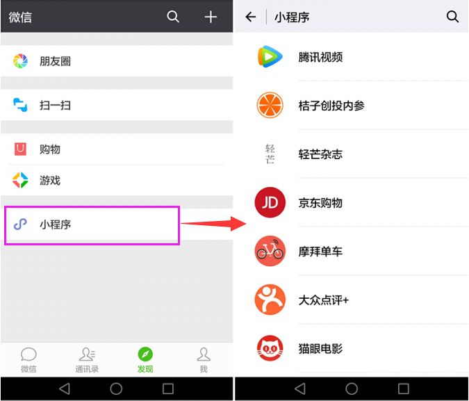 每次微信上線新功能,幾乎都會(huì)在第一時(shí)間刷爆朋友圈。這一次不同,如果不是通過微信里的好友分享,你幾乎無法發(fā)現(xiàn)小程序已經(jīng)上線了。用戶只有第一次打了一個(gè)小程序后,才會(huì)在用戶的“發(fā)現(xiàn)”欄出現(xiàn)一個(gè)“小程序”入口,并且入口下只會(huì)顯示用戶打開過的程序,系統(tǒng)不推薦。