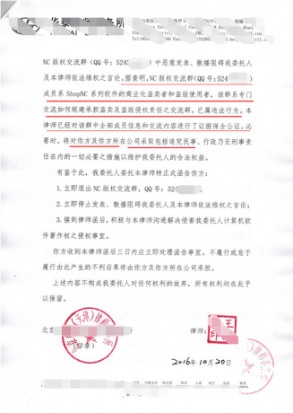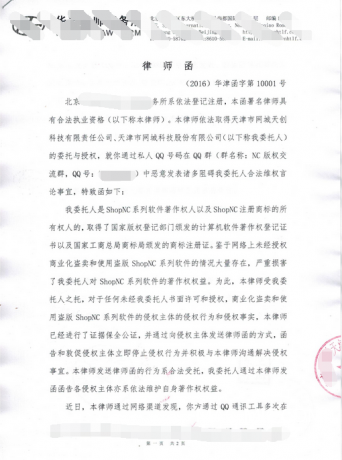 有關(guān)收到ShopNC計(jì)算機(jī)軟件著作權(quán)侵權(quán)律師函的建議
